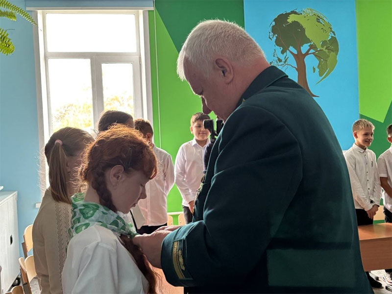 Лесничие рассказали ребятам о проведении совместных акций, участии в лесовосстановлении и прочих мероприятиях, в которых им отныне предстоит участвовать. Учащиеся 5-6-х классов, которым торжественно повязали зелёные галстуки, принесли клятву стать лесу верными друзьями.