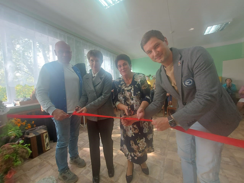 С.В. Перевалов, М.А. Денисова. Л.А. Шарафетдинова и помощник главы администрации, участник СВО Д.Н. Потапов под аплодисменты зала перерезали красную ленту, тем самым символизировав «Выставка открыта!»