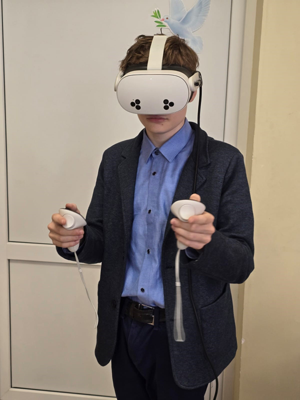 На полученные средства было закуплено техническое оборудование – витрины для экспозиционных материалов и интерактивное оборудование - игровой ноутбук и шлем виртуальной реальности. Два брата из Луганской области Матвей и Платон Бородкины, которые учатся в здешней школе, разработали проект, как будто мальчик находится в подвале дома в Луганске, где всё завалено, и он должен выйти оттуда к своим родителям.