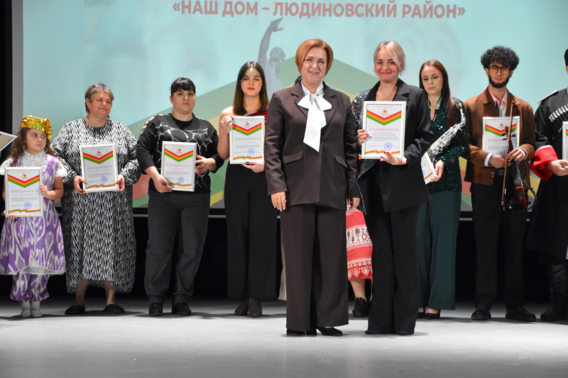 Творческая часть Х районного фестиваля межнациональных культур "Наш дом - Людиновский район" завершилась исполнением участниками вокальной студии «АРТ-Созвездие» песни «Наш дом». В едином порыве, с душевным настроением и теплотой они исполнили песню о великой родной стране.