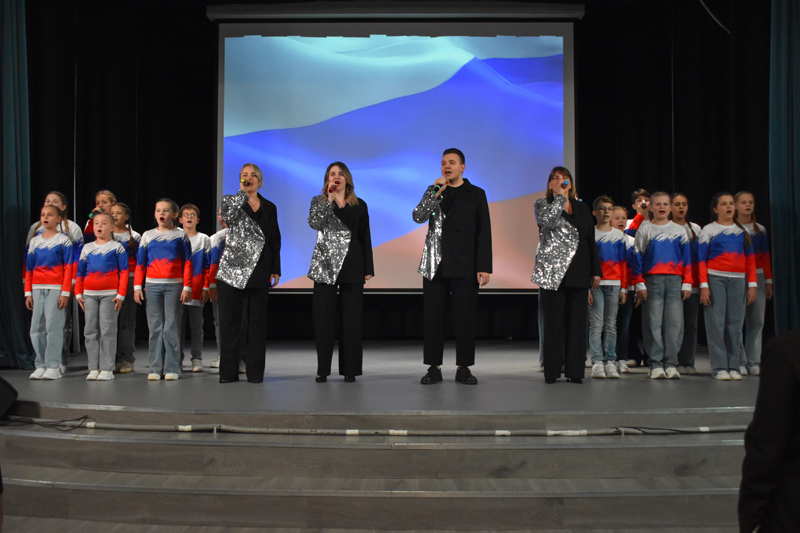 Сам праздник проходил в зрительном зале РДК. Коллективы «АРТ-Созвездие» и «Непобеждённые» придали празднику торжественность, исполнив на фоне флага Росси Гимн.