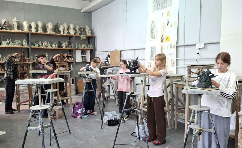 Директор Академического лицея Т.А. Мищенко высоко оценила уровень подготовки юных скульпторов, с которыми занимается преподаватель Н.С. Антонова.
