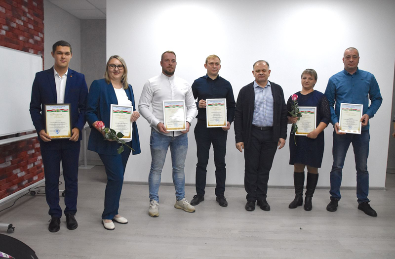 В торжественной обстановке лучшим представителям профессии Андрей Петрович вручил Почётные грамоты регионального Минсельхоза. За добросовестный плодотворный труд в агропромышленном комплексе Калужской области Почетной грамотой Министерства сельского хозяйства награждены К.А . Пигарев, зав. отделом сельского хозяйства администрации муниципального округа; работники ООО «Агро-Инвест»: Т.Н. Борисенко, ведущий специалист отдела качества, И.В. Демин, руководитель транспортного отдела, О.Н. Майструк, мастер участка сортировки №4, Д.А. Рукавичников, главный агроном ООО «Зелёные линии - Калуга» .