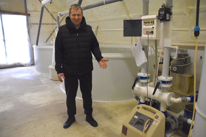 - В основном первом цехе удалось в этом году запустить еще одну установку, диаметром 6 метров, - рассказывает Николай, - главная "начинка" чанов - система очистки воды, позволяющая использовать технологию УЗВ - устройства замкнутого водоснабжения. Суть её в том, что вода в резервуарах с рыбой не меняется постоянно, а очищается при помощи фильтров, а также в системе подачи кислорода. Это снижает расходы не только на саму воду, но и на её подогрев, что очень важно в суровое зимнее время. Большое значение имеет поддержание заданных параметров воды и воздуха в помещениях, кормление в строго определённое время. Потому как мальки растут все по-разному, за ними необходим тщательный уход. Сейчас мы знаем плюсы и минусы нашей работы. Представьте себе, нужен колоссальный труд, чтобы каждые полгода сортировать рыбу по весу. Сортировка - это аксиома успеха, ведь необходимо рассчитать четкий вес рыбы, чтобы составить формулу её кормления.