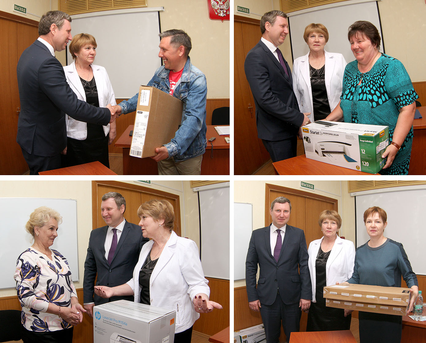 Оргтехнику, приобретённую за счёт гранта выигранного областного конкурса "На лучшую организацию работы представительного органа муниципального района” в 2017г., глава администрации Даниил Аганичев и председатель Районного собрания Любовь Гончарова торжественно вручили отделу образования, отделу культуры, редакции газеты "Людиновский рабочий", СП "Деревня Игнатовка", СП "Деревня Заболотье".