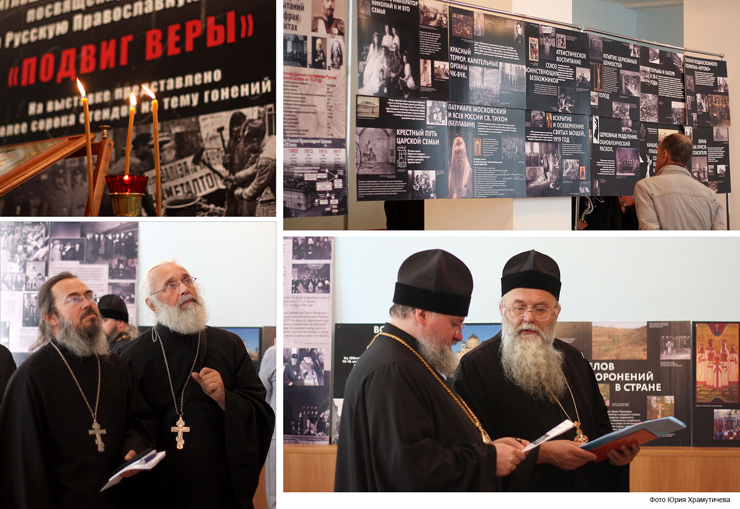Перед началом пленарного заседания участникам чтений была представлена выставка Православного Свято-Тихоновского гуманитарного университета. Она посвящена страницам истории Русской Православной церкви первой половины ХХ века, духовной жизни в условиях гонений и подвигу новомучеников. На стендах экспозиции размещены фотографии самых главных церковных деятелей Поместного собора 1917-1918 гг. и первых десятилетий советской власти. Здесь можно было увидеть митрополитов Антония (Храповицкого) и Арсения (Стадницкого), которые были кандидатами на патриаршество вместе со святителем Тихоном. Есть стенды, посвящённые митрополитам Кириллу (Смирнову) и Владимиру (Богоявленскому) и многим другим.