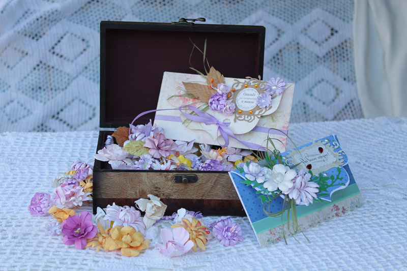 Подарок в подарке Скрапбукинг - от английского "книга из вырезок". Это отдельный вид рукодельного искусства тоже недавнее увлечение умелицы. Всерьёз заинтересовавшись созданием рукотворных цветов, она купила специальное настольное оборудование и ножи. Вика показала, как именно получаются бумажные цветы так сильно похожие на настоящие. Первое, что необходимо сделать, - это вымочить бумагу, потом её покрасить в нужный цвет и лишь затем "выдавить" цветок. Но это лишь верхушка айсберга. Эти цветки-малютки украшают поздравительные открытки и конверты, таблички для рассадки гостей на свадьбах и пригласительные, которые она тоже делает своими руками. В магазинах для творчества она приобретает всякие разные мелочи, которые становятся "вишенкой на торте" в изделии. Работа трудоёмкая и лишь желающий творить, разделит с этим жизнь.