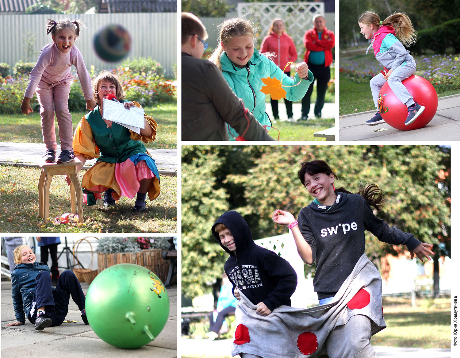В самом начале ребятишек разделили на две команды: "Эх" и "Ух", как говорится: "От их задора захватывает дух!" И начались весёлые игры, конкурсы, спортивные эстафеты, проходившие на четырёх различных площадках: "Осенняя", "Затейная", "Потешная", "Развесёлая". Девчонки и мальчишки скакали на прыгунах, обгоняли друг дружку на самокатах, играли в хоккей и волейбол, пролезали по туннелю, наперегонки бежали в потешных штанишках. Пройдя все испытания команды "Эх" и "Ух" пришли к победному финишу с равным счётом - 7:7.